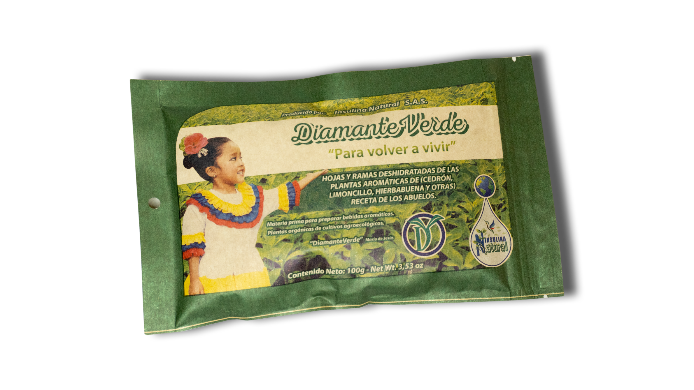 Cultivado y fabricado por Insulina natural S.A.S. Conjuntamente con un grupo de personas desplazadas víctimas de la violencia en las fincas Santa Rosa Y María de Jesús en el municipio de Samaniego- Nariño- Colombia.