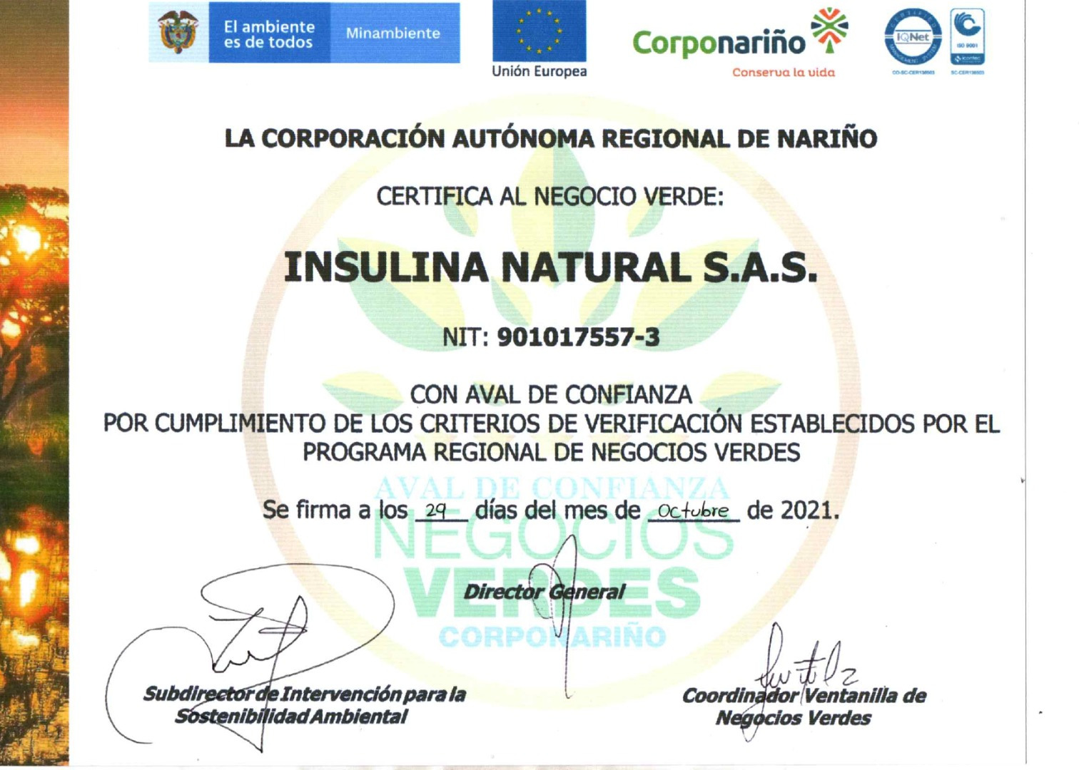 Certificación Negocios Verdes